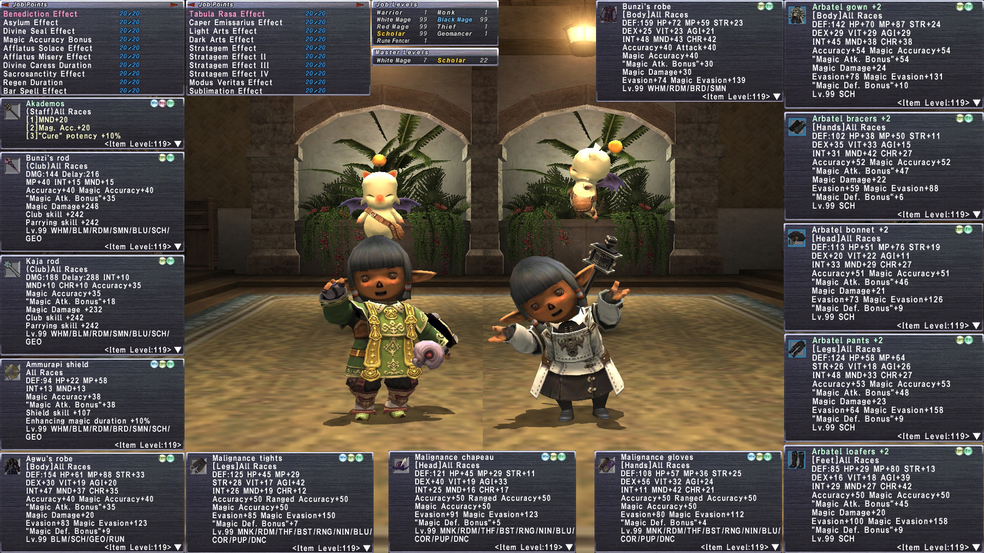tldr Basic Asura Taru with a servicable SCH and WHM that needs some polish, RoV done. Su5 necls, Ambu Capes for WHM and SCH. Full +10 Enhancing Telchine. Account is basic but good started and on Asura