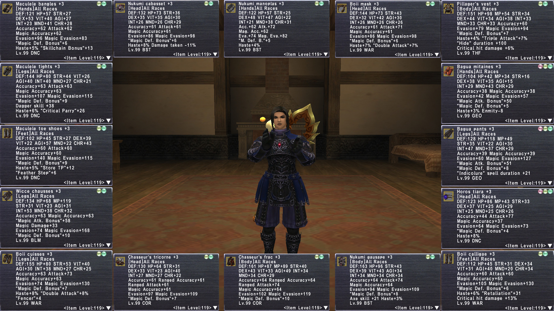 (2) Chas. Earring +2 99 (System: 1 Id: 1676 Val: 0, Accuracy+19, Mag. Acc.+19, Crit.Hit Rate+7, Str+13 Agi+13)