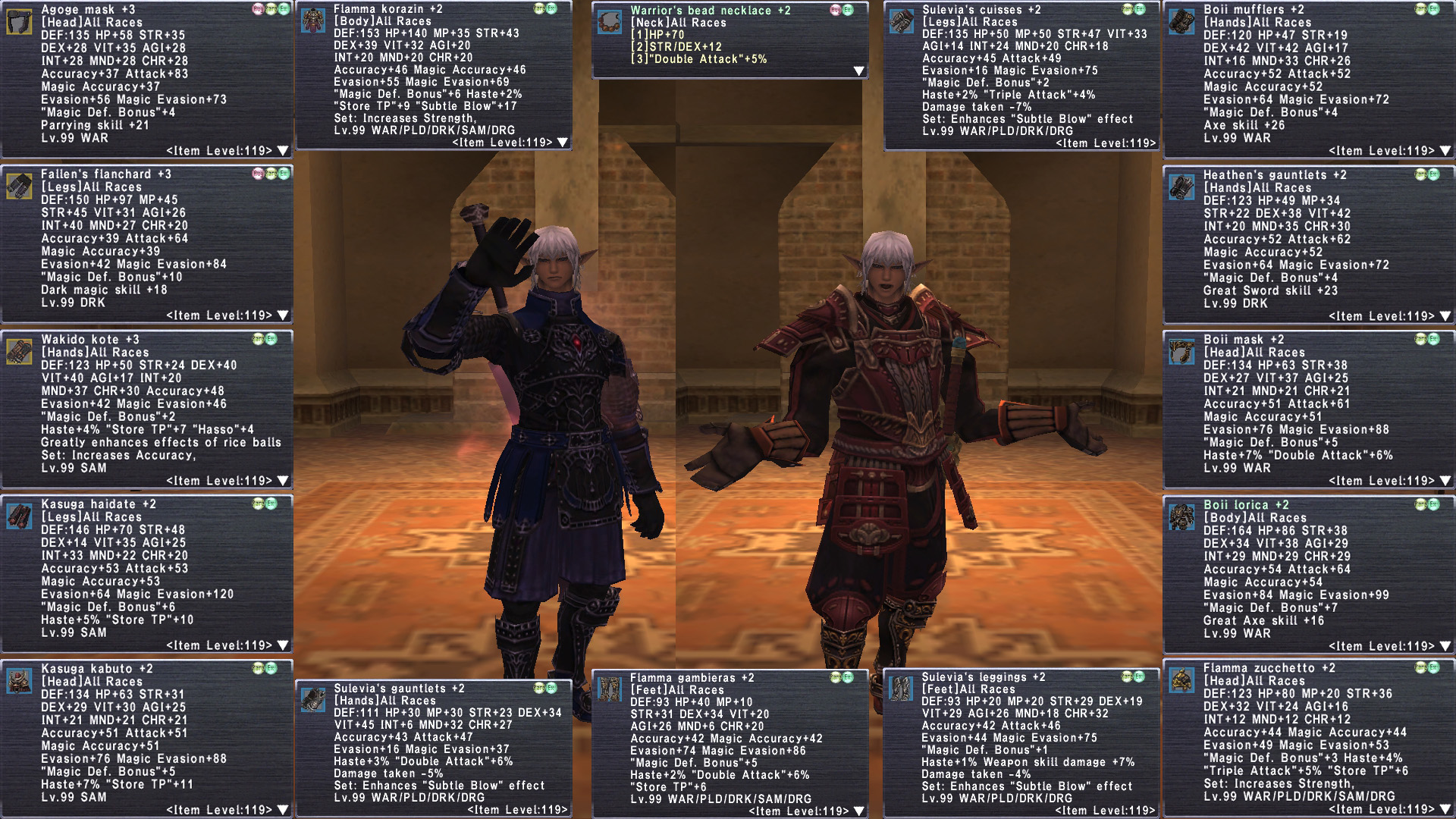 (2) Cichol's Mantle 99 (Str+20, Accuracy+20 Attack+20, Weapon Skill Damage +10%)