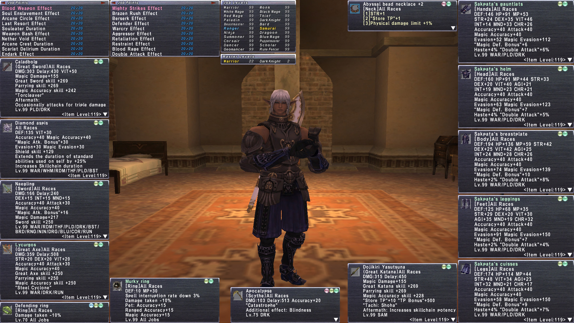 tldr 22 Job Elvaan with main job Warrior Dark and Sam. Good DD account with basics obtained. Ambu backs. some Unity gear. Some omen Gear. Decent setup on Sortie+2 which makes them capable for almost all content. This is a great account for someone looking to add a DD/DPS and its on Asura.