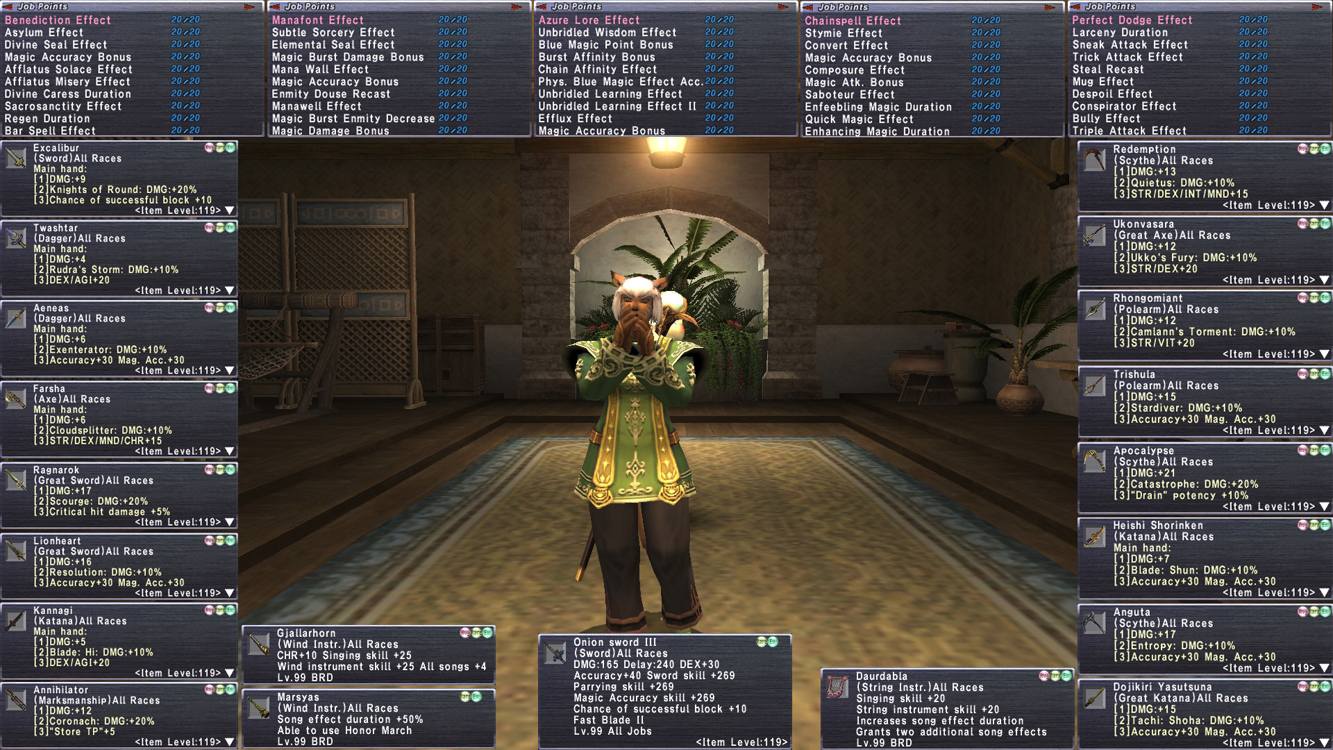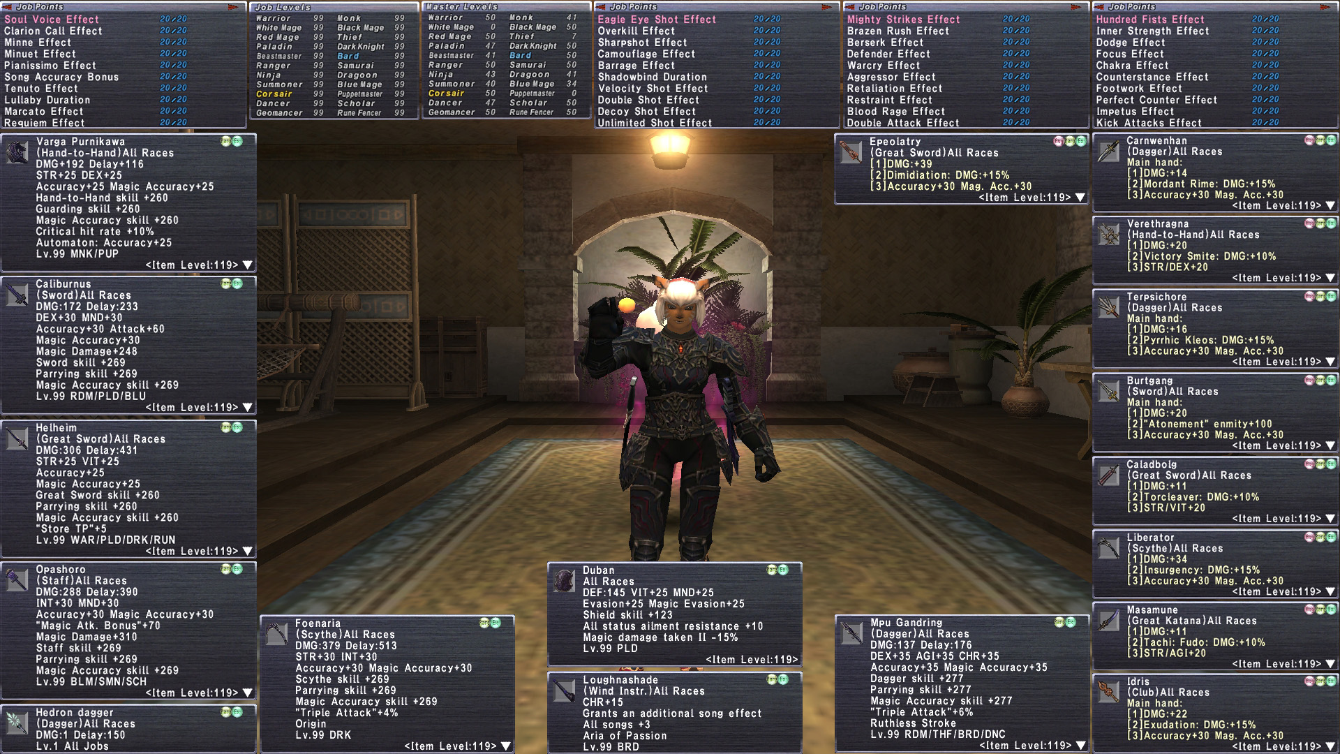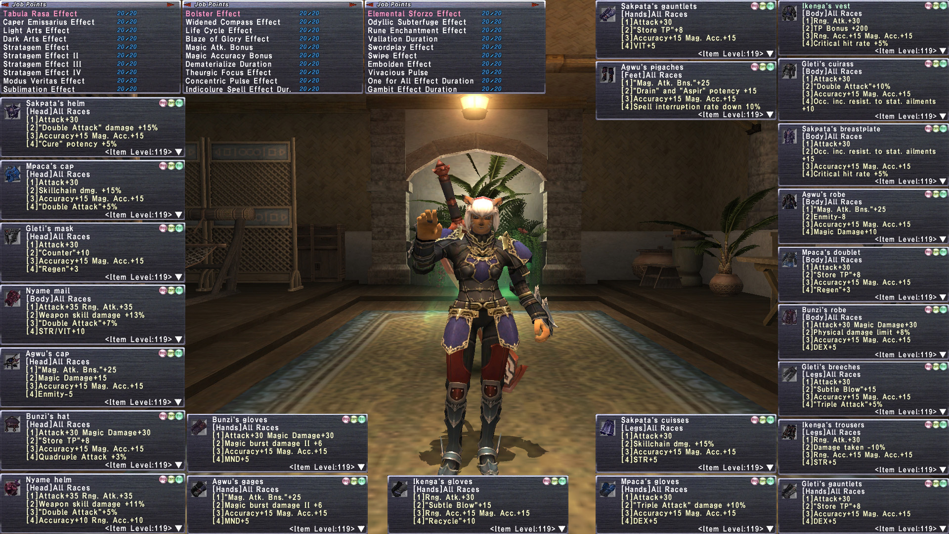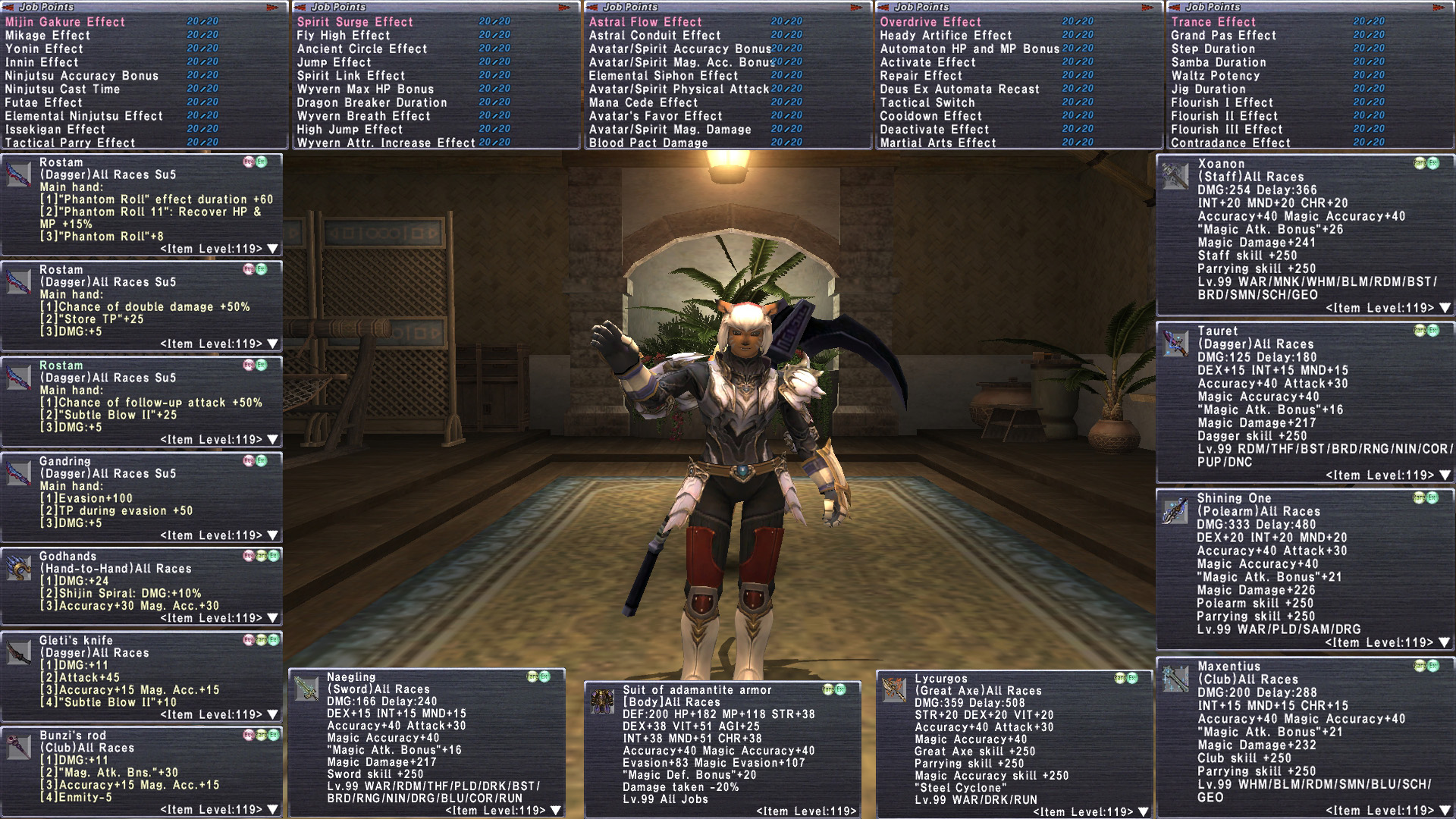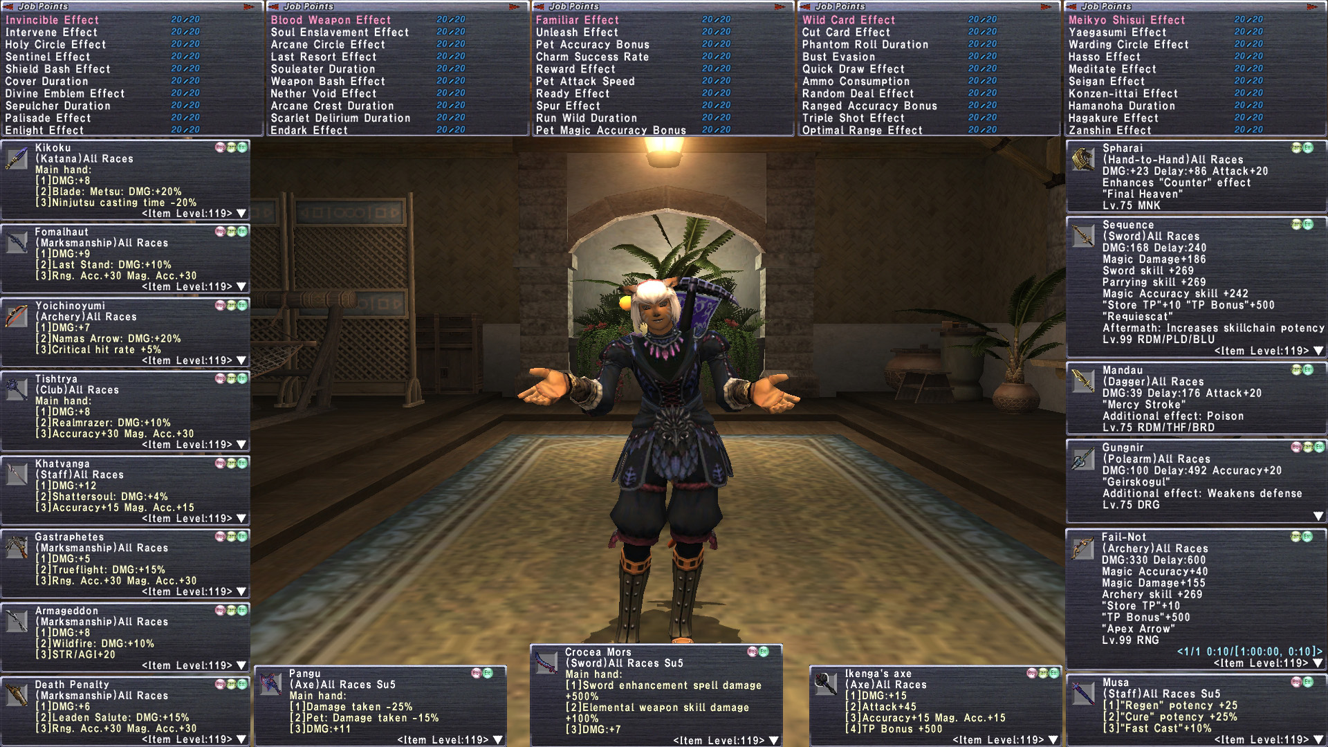 tldr The most insanely elite geared account every brough to market. 100% completed Stage 5 Prime Mpu Gandring. (4) Stage 4 Primes. (3) Stage 3 primes. 44 REMA. 13x Limbus+4. Full Odyssey R25 clears. Almost every piece at Rank30, including Nyame30. This account can pop Bumba v25 wth 265k Mog Segments. Masssive Empy+3 with 1.6m Gallimaufry, 87 Relic+3, 69 AF+3, 19 su5+2 necks. Almost every piece of Volte Armor. Every Omen R/EX drop. Insane DM Aug Phalanx+4/5, Refresh+2 on Herc/Merlinic/Ody. 38 pieces of 119+1 abjuration. Full 50/50 Ambu+2, Almost all weapons. Over 140 JSE back pieces. Full 4/4 Null, Full Malignance. Over 60 pieces of Unity+1 Rank15. Full Crepuscular. Full C. Palug. Adamantitle Armor. Tp bonus gun/dagger/sword/gun. Tizona inprogress (only ichor left). Beast ML with 11 jobs at ML50 and most 40+. This is the ELITE of the ELITE.