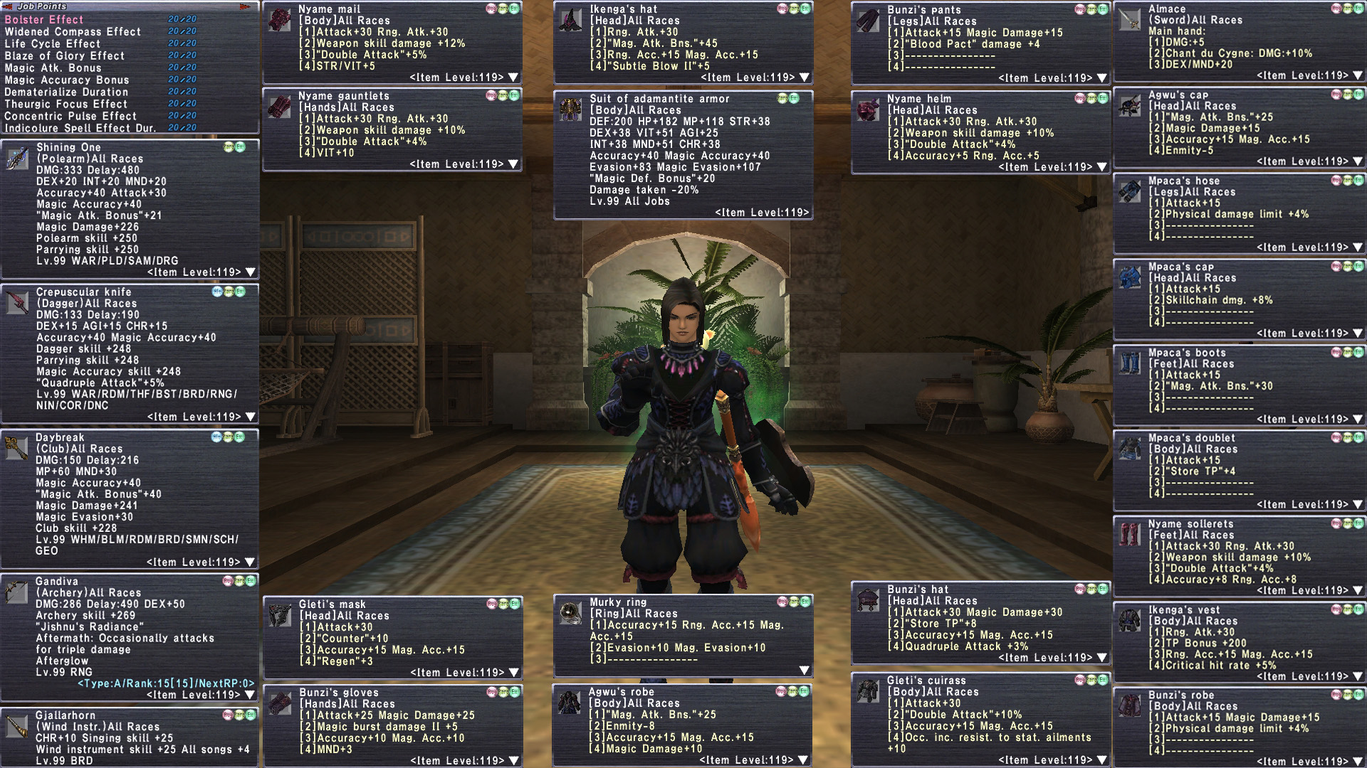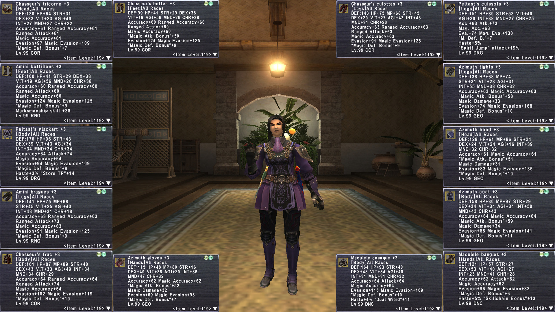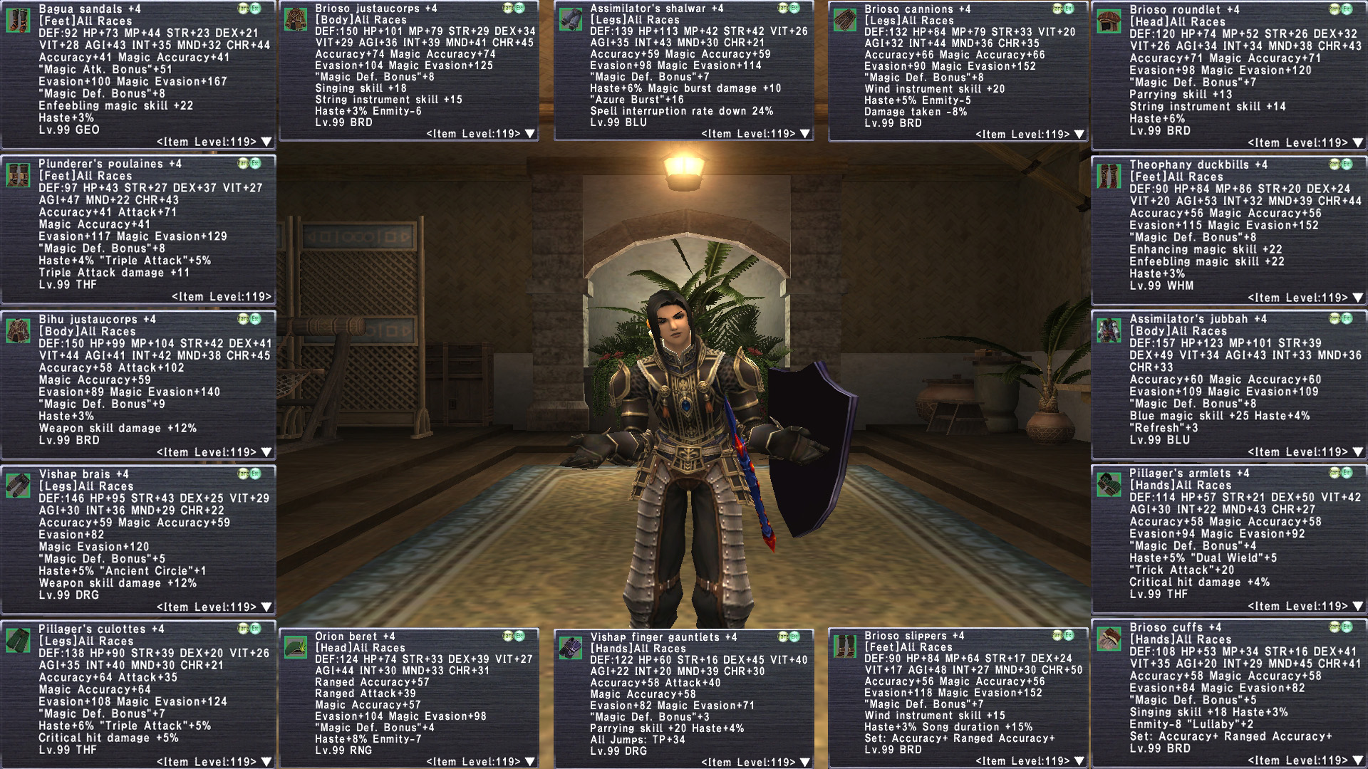 tldr Beastly Hume Female on ASURA. REMA Bard. Yagrush WHM. IDris GEO. Tizona BLU, Trish DRG, Mythic Beast. REMA COR and RNG. Its ALL here. Lots of Rank 30 Odyssey gear. 20 pieces of Limbus+4. Rank 30 alabaster earring, R25 Murky Ring. 10x su5+2 necks triple rostam, pangu/gandring/ascelpius/zomorrodngar su5 weapoins. Tons of sortie+3 Af/Relic+3 Mastery Rank 6. Heavy ML, lots of 50s. Full malig. Crep Knife/Cloak. 3x Null. (2) Stage 3 Prime's Horn/Gun. 4x TP bonus weapons. Ambu backs proper. Over 40 pieces of Unity+1@r15. Missions done including RoV and tVR.