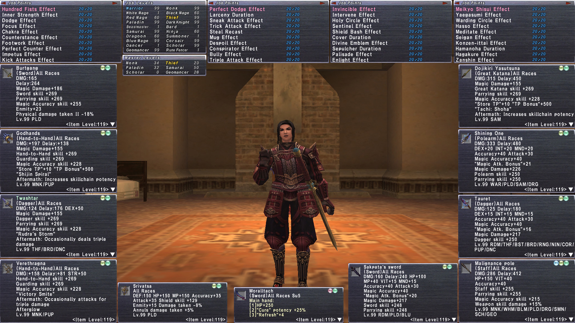 tldr Nice Hume Female with a Burtgang Paladin. Doji SAM, Godhand/Vere monk. Twasht THF. 6/6 Legend with Capable GEO just need an Idris made. (coalition are done!) and 2.7m Plasm on hand. RoV and tVR complete. Full Malig. 3x Null including Masque. Nicel well rounded account with great foundationals that could round out any setup. Tank/DD/GEO/TH Thf.