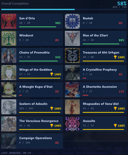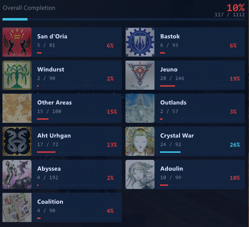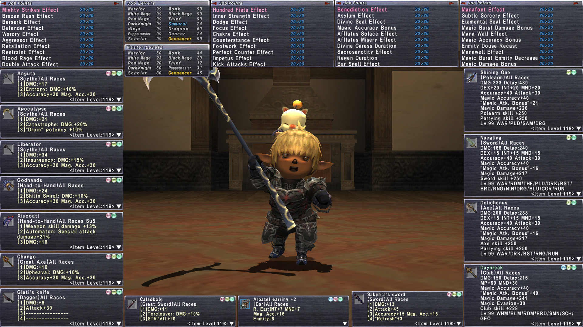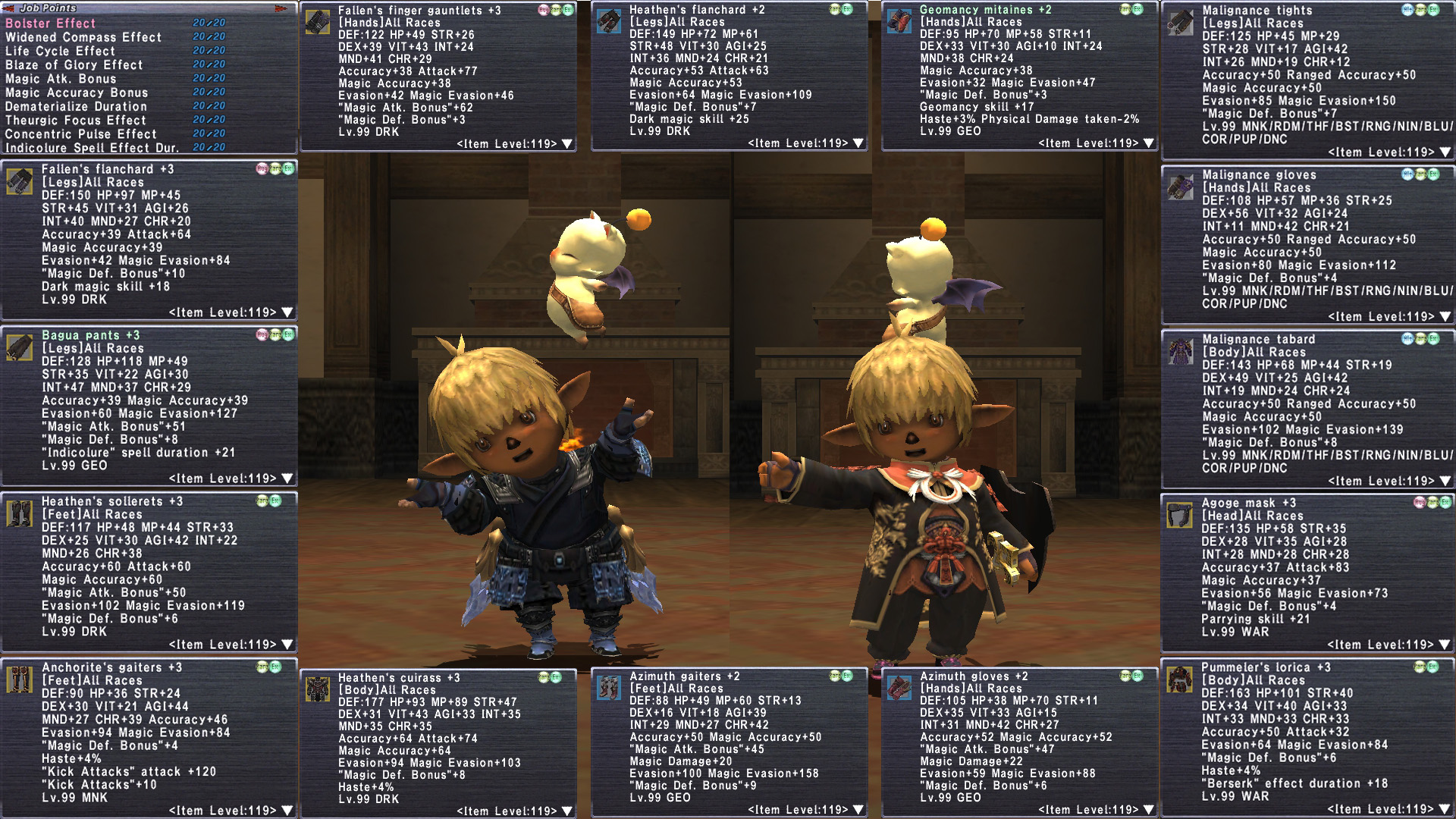 tldr Nicely done DD Taru with a up and coming GEO. ML50 DRK with REMA. Chango ML50 warrior. R15 Godhand monk. Nyame @ rank25, and Sakpata @ r30. Reforged +2/3 AF/Relic/Emp. Capable geared GEO. Domain Invasion pieces Unity+1@15. Full Malignance. Missions including RoV and TVR complete.